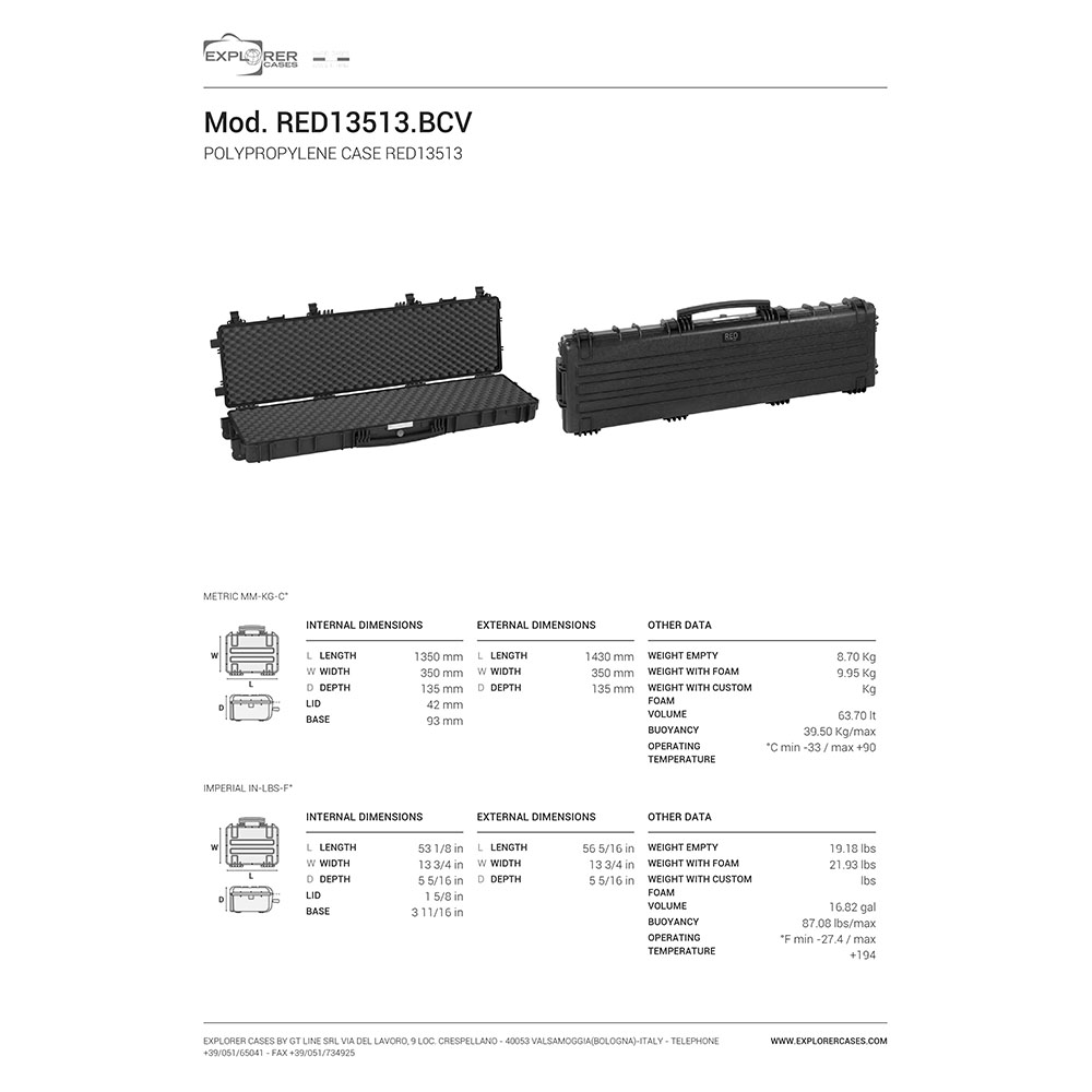 RED 13513, EXPLORER CASES Red 13513 BCV - Convoluted Foam er det ultimate våpenkassen med en rekke funksjoner i høyeste kvalitet, produsert av Explorer Cases i Italia.