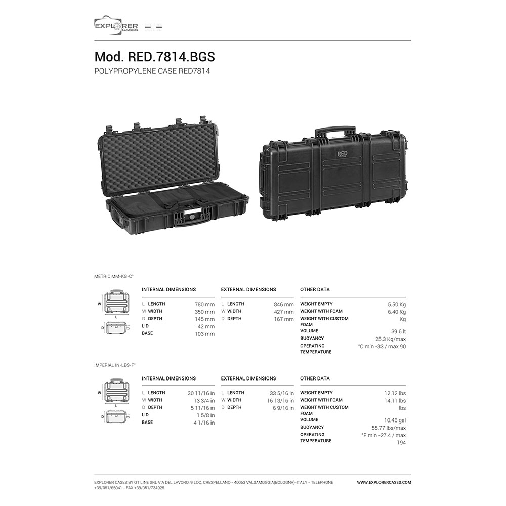 EXPLORER CASES Red 7814 BGS - inkludert Gunbag, er den ultimate våpenkassen med en rekke funksjoner av høyeste kvalitet, produsert av Explorer Cases i Italia.