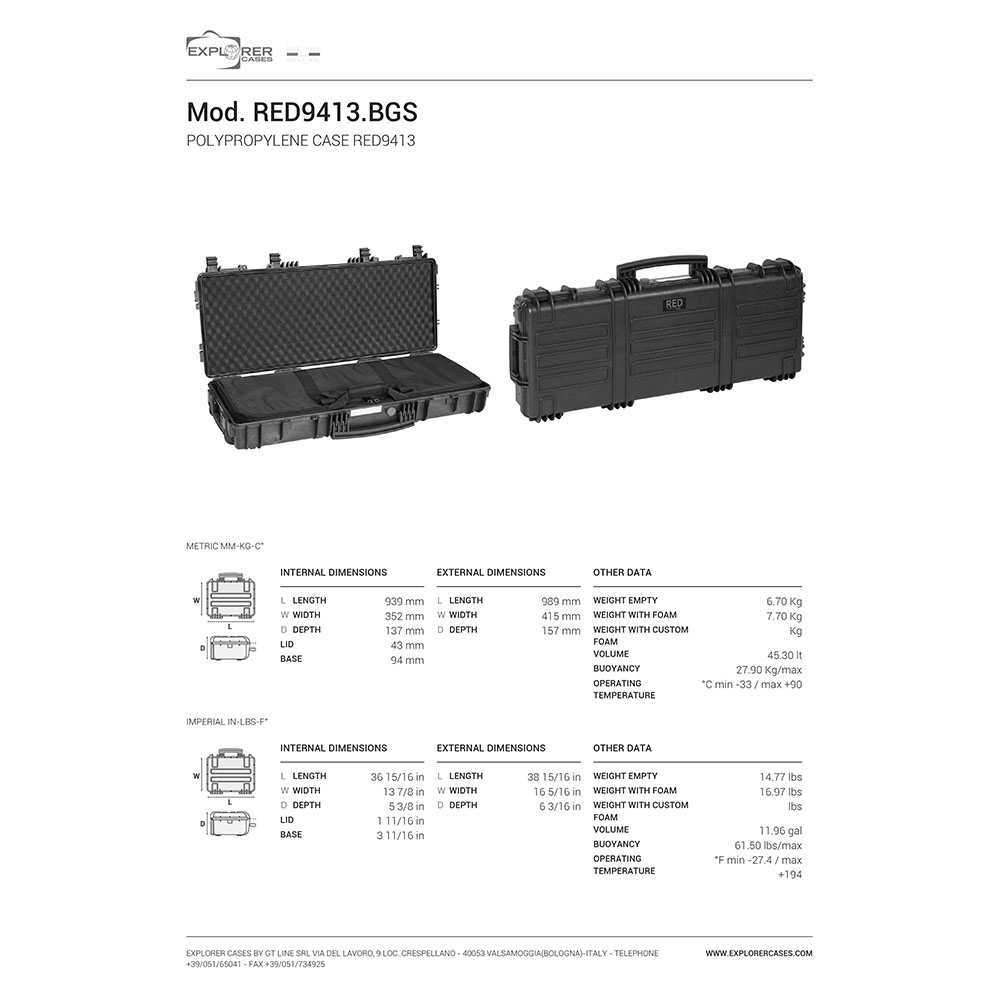 RED 9413, EXPLORER CASES Red 9413 BGS - inkluderer Gunbag.