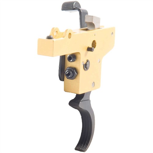 Hand honed and fitted for the ultimate in crisp, clean trigger pull. Adjusts for weight of pull (11⁄2 - 4 lb.), creep and overtravel. Lock nuts hold settings. Featherweight Deluxe (FWD) features the same adjustments and hand fitting as the Deluxe but includes trigger blocking and side safety.
