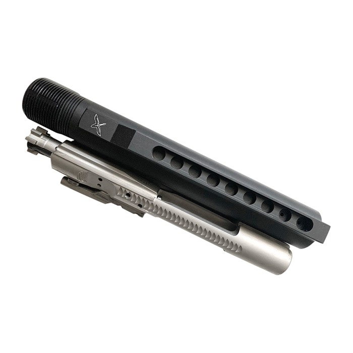 RE5F er laget av slagekstrudert 7075 aluminium med rulletråder. Innvendig er den tørket film-smurt, kroppsdiameteren er milspec (kompatibel med alle milspec karbinstokker), og den har ekstra dreneringshull for bedre og raskere drenering av vann inne i RE.