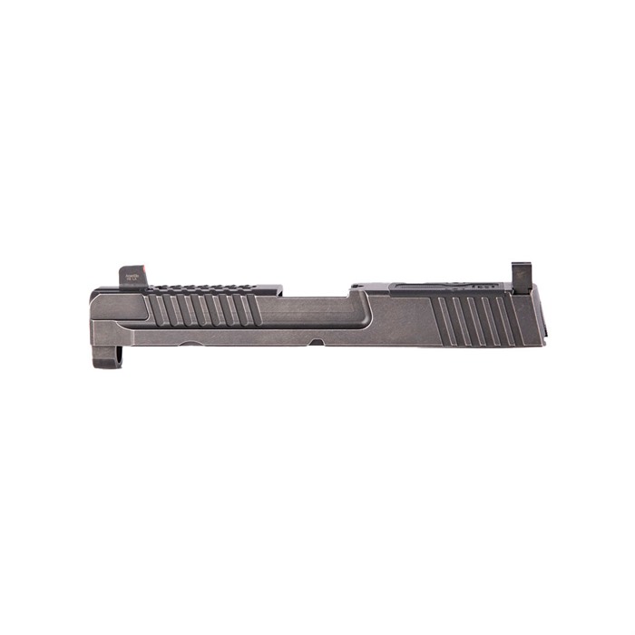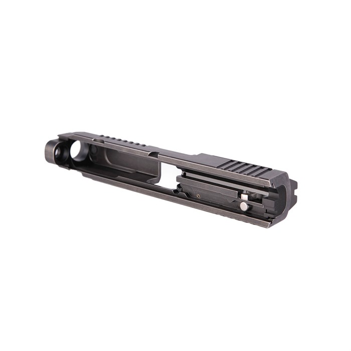 Custom machined slides for M&P® 2.0® full size pistols, completed with the custom extractor, serrated backplate, extended striker block plunger as well as suppressor height sights and all the little springs, pins, sleeves, and hard-to-find pieces, fully assembled and ready for drop-on assembly to your M&P® 2.0™. Compatible with polymer and metal frame. Custom machined from 17-4 stainless bar stock to precision tolerances, and cut for Trijicon RMR or SRO optic. Includes Ed Brown RMR coverplate.