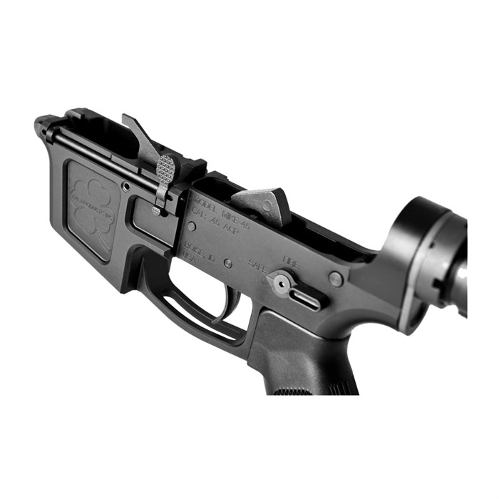 Begrepet "komplett" betyr at disse lower receiverne er satt opp med Foxtrot Mike Products Mil-Spec fire control group, deres proprietary bolt release og magazine release, samt en rifle buffer tube med 8oz buffer og .308 buffer spring for å håndtere .45 Auto patroner.
