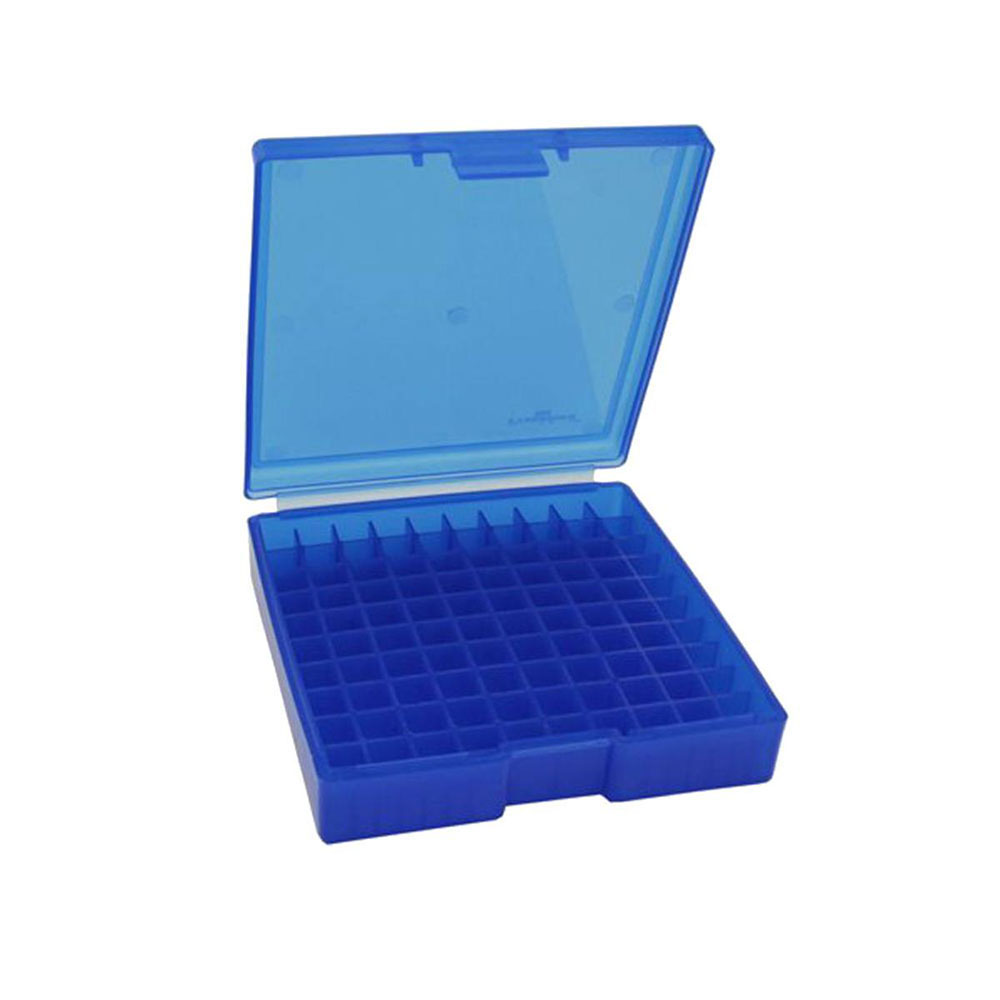 See-through plastic ammo boxes make storing and identifying your reloaded ammunition a snap. Available in two different colors and twelve different sizes to fit most calibers. Our system allows you to get organized and stay organized. Our ammo boxes fit a full variety of calibers, many more than the examples mentioned.