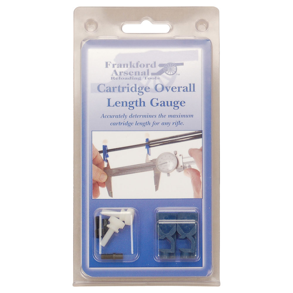 Med Frankford Arsenal Cartridge Overall Length Gage kan du enkelt bestemme den optimale OAL for hvilken som helst kule. Dette enkle settet består av to klemmer som lett festes til enhver rengjøringsstang med en diameter på ¼” eller mindre.