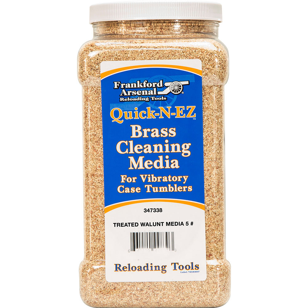 Frankford Arsenal Brass Cleaning Media, Treated Walnut Hull Media 5 lbs. er det ideelle valget for deg som ønsker å holde dine messingkomponenter i topp stand. Dette produktet leveres i en gjenbrukbar plastbeholder for enkel oppbevaring.