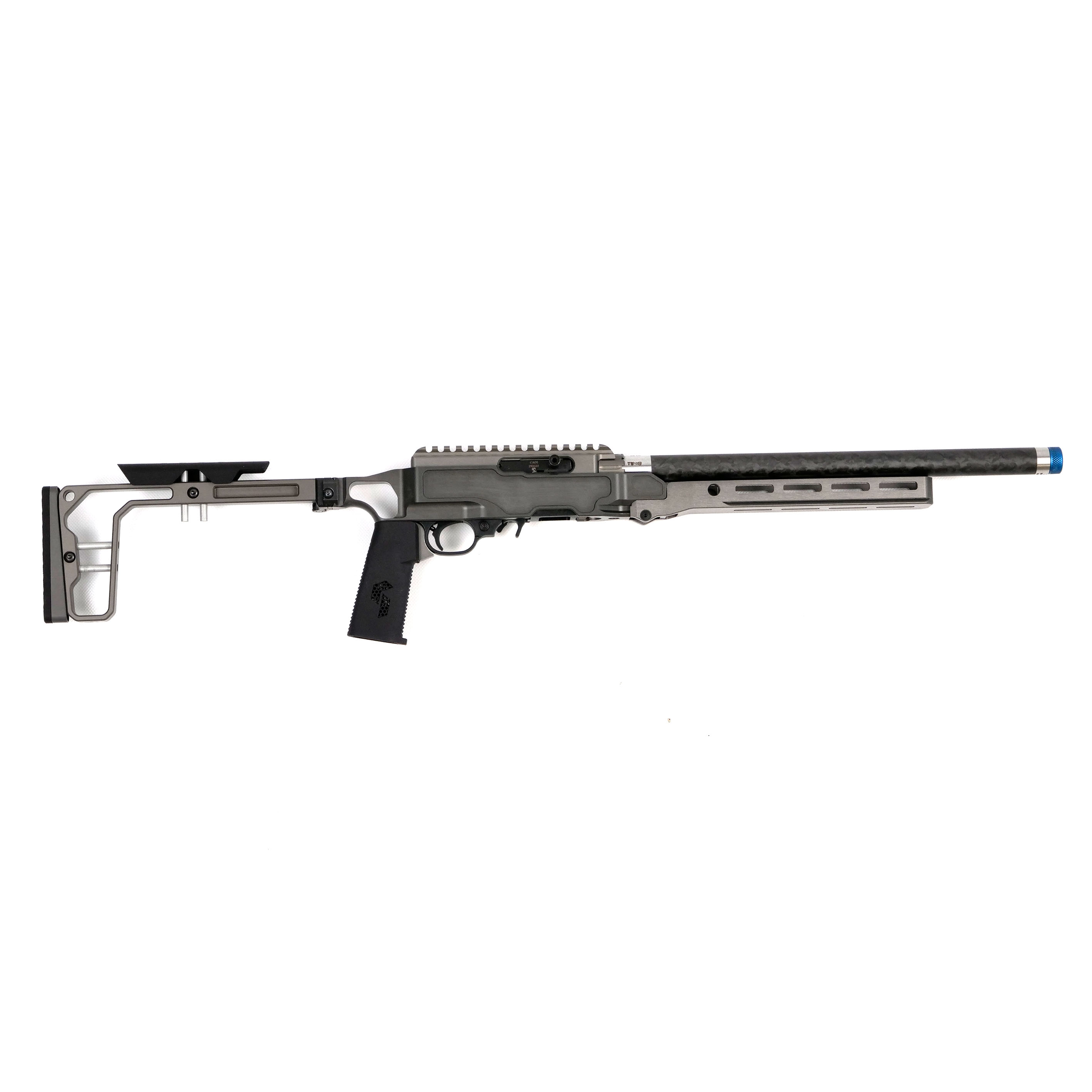 The Foundation rifle also utilizes the brand new Fusion Receiver System. In a departure from the traditional V-block design, Grey Birch has developed a threaded receiver and barrel system with the goal of increasing accuracy and consistency in the semi-auto platform. The LDR with integrated 20 MOA rail helps users push the limits of the 22LR and its range capabilities. The Foundation LDR Rifle is compatible with most factory Ruger 10/22 ™ parts.