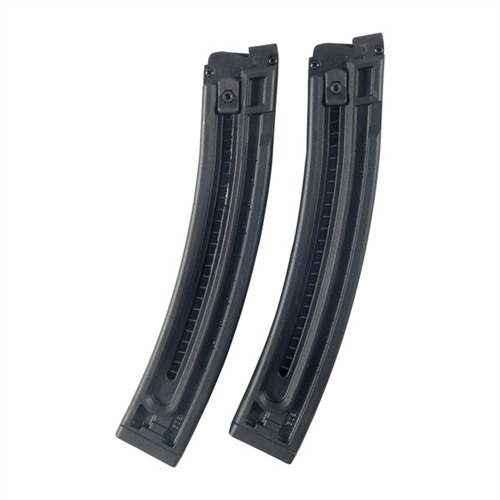 FEATURES: Available in 10- or 22-Round capacities Two magazines per pack Black polymer construction Molded round count indicators Round count window on each side Loading assist device on each side Made in Germany For GSG-5 rifles BENEFITS: 22 round factory magazines ensure the highest reliability possible Durable, polymer construction Easy loading with the built-in loading assist device attached to the follower Quick assessment of remaining round count using windows on each side