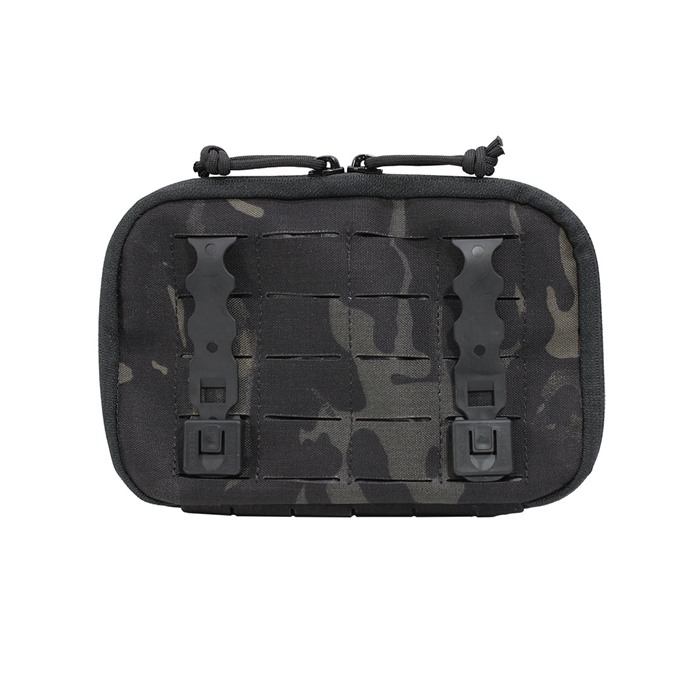 Grey Ghost Gear's latest Admin Pouch Enhanced is now thinner and made from Laminate nylon, which means it's lighter and more streamlined than ever before! Attaches to modular webbing with the two included Malice Clips®. The front of the pouch is covered in modular webbing as well as loop material for attaching name tapes or patches. The interior features a pocket and multiple elastic loops for storing smaller items like pens, lighters small multitools and batteries. The adjustable cord allows the pouch to open completely or as a desk while a heavy duty dual pull zipper keeps things secure. Available in Black, Coyote Brown and MultiCam. Materials: 500-D Cordura Laminated Nylon 1.5" Heavy Elastic Loop Panel Injection molded Malice Clips® Dimensions: 8" x 5.4" x 3.4"