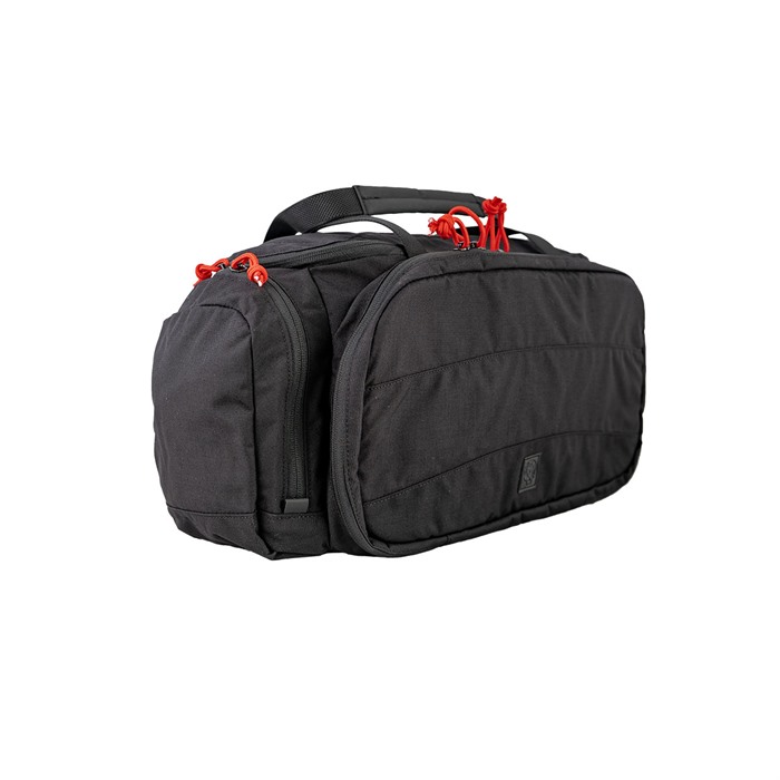 Innvendig i hovedrommet er det foret med borrelås-materiale, slik at du kan tilpasse skilleveggen og den avtakbare mesh-dump-posen for deg som samler på hylser. Lokket har mesh-lagring på undersiden for enda mer organisering av skyteutstyr.
