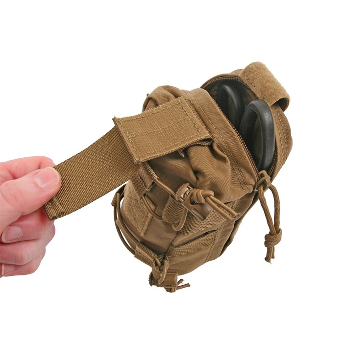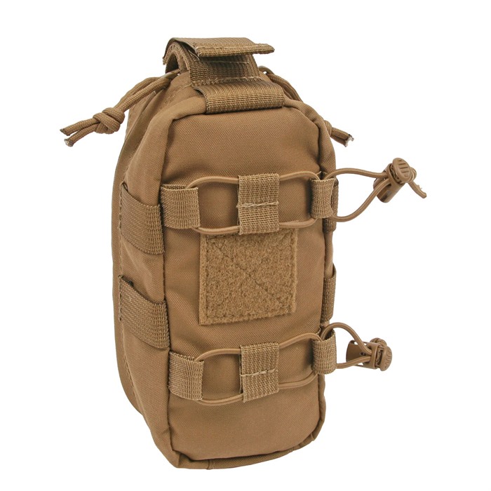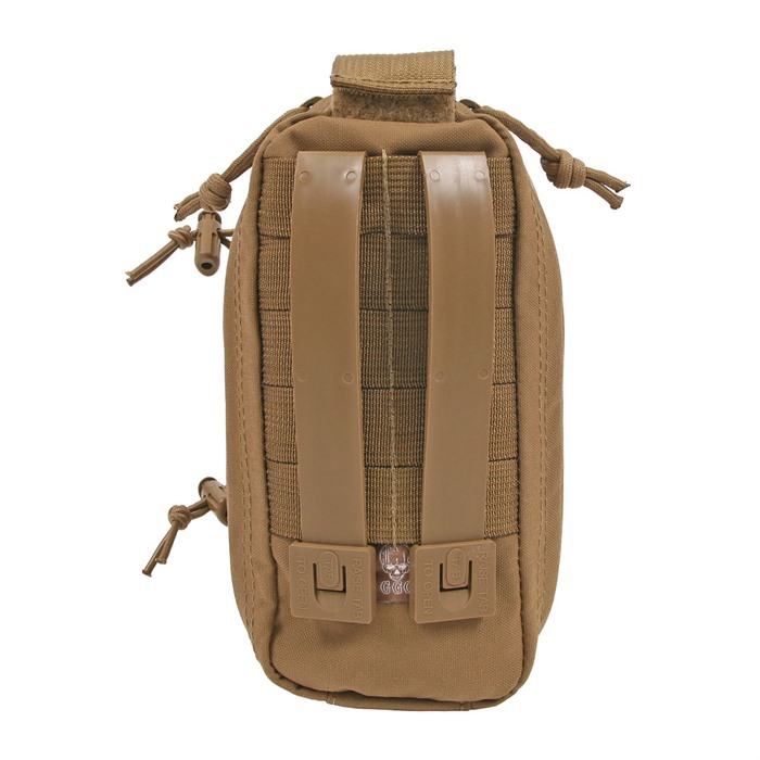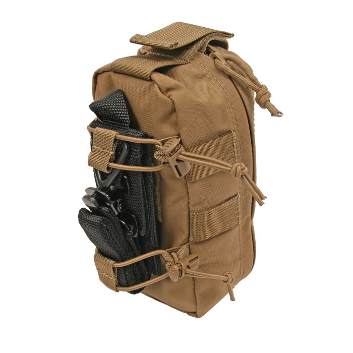 Et bungee-retensjonssystem på forsiden av pouches kan sikre en tourniquet, og to rader med modulær webbing på hver side kan holde et par traumaklipper eller andre viktige gjenstander. Pouches er konstruert av 500D Cordura® Nylon og festes til enhver MOLLE/PALS-stil webbing med de to medfølgende MALICE® Clips.