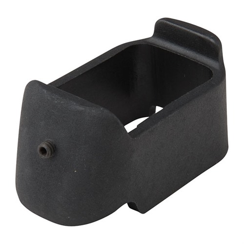 Slip-on collar, fills the space between a compact frame and bottom of a full-sized magazine to make a comfortable, hand-filling grip. Contoured to match the frame for improved trigger and recoil control. Ideal when using full-size magazines as backup.