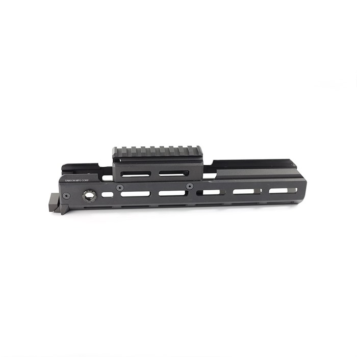Samson Mfg’s new K-rail is a game changer. This M-LOK® Handguard for AKs is comprehensive and user friendly to install, from the adjustable handguard alignment system to the different versions which accommodate a preferred sling attachment style. No gunsmithing required, though you may need minor fitment or filing depending on your rifle. This new K-Rail fits most stamped AKM rifles and comes in two versions; Sling loop cut out; Non sling loop version with integrated ambidextrous QD point for modern sling attachments FEATURES: EASY INSTALL 5 sided M-LOK® (with top rail M-LOK®) Extended handguard length shields users hand from barrel and allows for more accessories Allows for optic mounting on top rail Works with factory gas tube Does not require removal of lower handguard retainer Adjustable! Twistable wedges in receiver block allow for rotation of handguard as needed for alignment Extended lip index point allows you to feel when your thumb is getting too close to the gas tube. Recessed screws to prevent burns Compatible with after market gas tube rails SPECS: 6061-T6 aluminum extrusion Type III class 2 hardcoat anodize in black 10.5"" from the front of the receiver Includes hardware Width 1.6"" Height without top rail 2" Height with top rail 2.7"