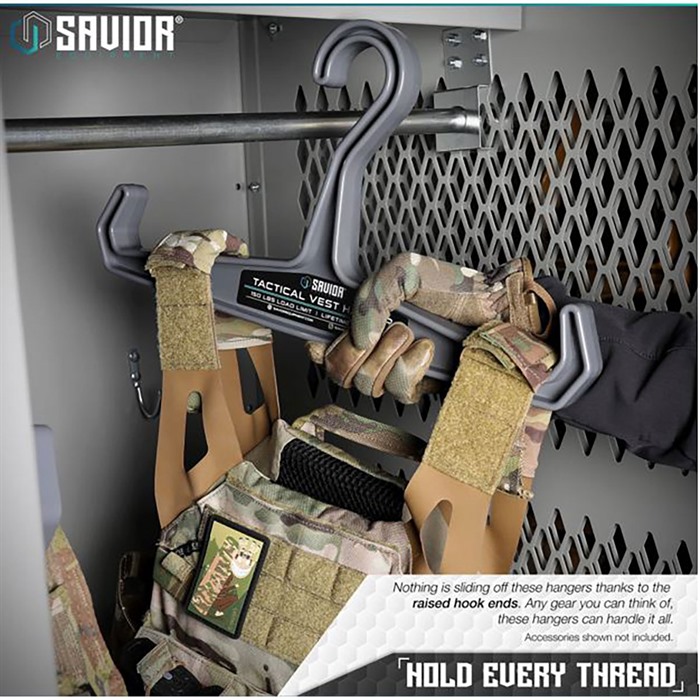 Med en belastningsgrense på 150 lb, kan du enkelt bruke denne robuste hengeren til å oppbevare taktiske vester og platebærere hjemme eller i et skap.