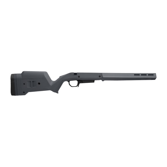 Designed as a cost-effective upgrade for Ruger American Predator & Ranch rifle models equipped with an AR magazine compatible stock, the Hunter American Stock – Ruger American® Short Action, STANAG Magazine Well features a fully adjustable length of pull, comb height, enhanced ergonomics, and reinforced construction. Constructed of reinforced polymer and an anodized aluminum bedding block with steel recoil lugs, the Hunter American Stock – Ruger American® Short Action, STANAG Magazine Well requires no gunsmithing and is your true “drop-in” solution. Tune your rifle to fit your needs with shooter-focused ergonomics that allow LOP adjustments from 13.0” to 15.0” with the included .50” spacers. Optional 0.00", 0.50", and 0.75" Cheek Risers are available to adjust cheek weld (stock comes pre-fitted with 0.25" Riser). The stock also comes M-LOK® compatible to accept a broad range of accessories to enhance your shooting experience. Magpul’s Bolt Action Magazine Well – Hunter American, STANAG (MAG1208) is included for reliable detachable box magazine compatibility. Made in the USA. Reinforced polymer construction with Type III hard anodized, machine finished cast aluminum bedding block High strength steel recoil lugs Fully adjustable length of pull Optional 0.00", 0.50", and 0.75" Cheek Risers available to adjust cheek weld (stock comes pre-fitted with 0.25" Riser) Bolt Action Magazine Well – Hunter American, STANAG included for reliable detachable box magazine compatibility M-LOK slots on forend sides and bottom for a wide variety of accessory and sling mounting options Push-button QD swivel compatibility in rear with optional Sling Mount Kits