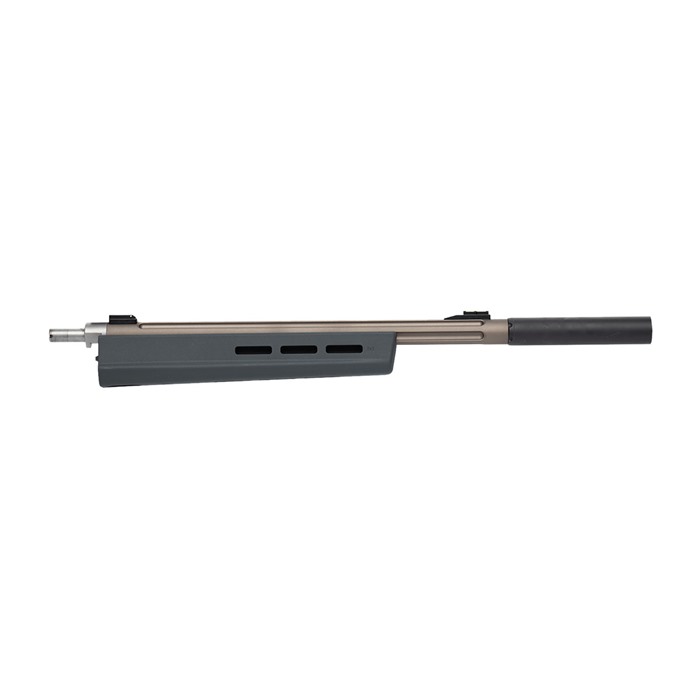 The Hunter X-22 Takedown Forend is intended for use with additional barrels on rifles currently equipped with the Hunter X-22 Takedown Stock. Made from high quality reinforced polymer, the X-22 Takedown Forend features a reversible barrel tray, ensuring proper fit for factory pencil profiles as well as heavy bull barrels with up to 0.920" outer diameter. It features multiple M-LOK® slots for accessory attachment and an adjustable barrel-tensioning shim in the forend for setting barrel preload (the barrel may also be free-floated). It also includes a dimpled drill point at the bottom of the forend for installation of sling swivel studs for bipod or sling swivel use. FEATURES Compatible with the Hunter X-22 Takedown Stock Easy exchange of different barrels for the same rifle Reversible barrel tray accepts factory and aftermarket barrels up to 0.92” OD Adjustable barrel-tensioning shim in the forend for setting barrel preload (the barrel may also be free-floated) M-LOK® slots on forend sides and bottom for a variety of accessory and sling mounting options Dimpled drill point to install optional sling swivel studs such as the Sling Swivel Stud, MAG819 Reinforced polymer construction for strength and durability Made in the U.S.A.