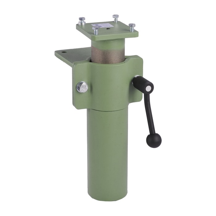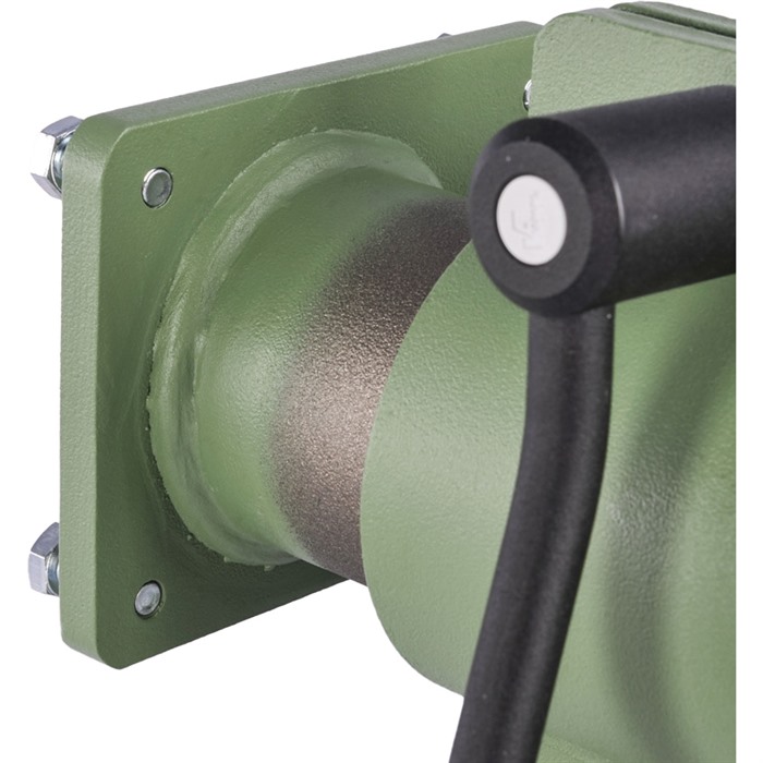 Hydraulisk løftemontasjes smidige mekanisme er så godt balansert at den tunge 20 lb. (9 kg) visen føles nesten vektløs. Når du har fått den i posisjon, vri håndtaket for å låse monteringen på plass, og den vil ikke flytte seg mens du arbeider. Samme robuste smidde stålkonstruksjon som visen selv, med en matchende grønn anti-korrosjonsfinish.