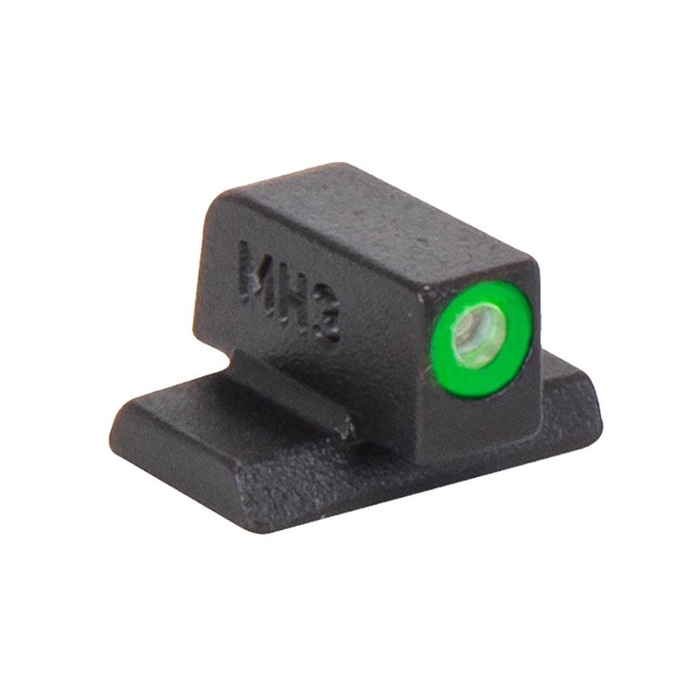 HYPER BRIGHT FIXED PISTOL SET M&P og HYPER BRIGHT FIXED PISTOL FRONT S&W M&P FULL SIZE G RING fra MEPROLIGHT er verdens lyseste håndvåpen sikte i alle lysforhold. Med tritium som er spesielt formulert for å gi en bransjeledende lysstyrke fra bred dagslys til midnatt, er disse selvopplyste, faste tritium-siktene utstyrt med en ekstremt lys farget ring foran i grønn, gul eller oransje, som gir overlegen synlighet som nattsikte eller dag-natt-sikte.