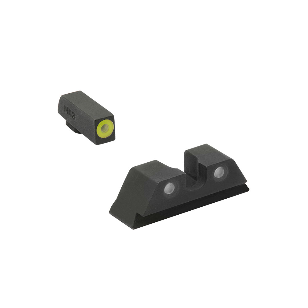 HYPER BRIGHT FIXED PISTOL GLOCK er verdens lyseste håndvåpensikte i alle lysforhold, med tritium spesielt formulert for å gi deg bransjens første briljans fra sterkt dagslys til midnatt. Disse selvopplyste, faste tritiumsiktene har en ekstremt lyssterk farget ring foran, tilgjengelig i grønn, gul eller oransje, som gir overlegen synlighet som nattsikte eller dag-natt-sikte.