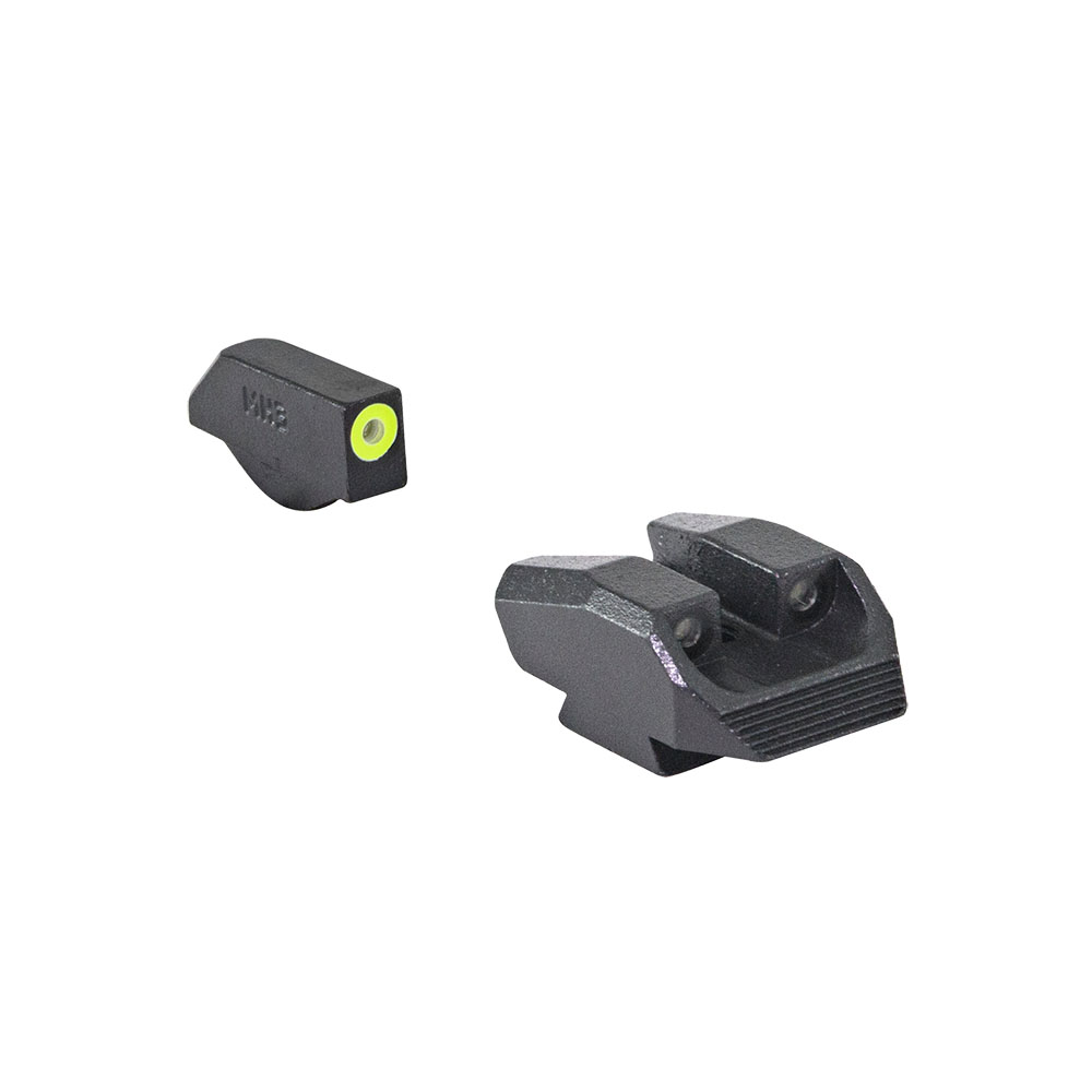 MEPRO Hyper-Bright™ faste dag- og nattsikter tilbyr den mest pålitelige belysningen for dag eller natt. Mepro Hyper-Bright™ faste sikter har en ekstremt lyssterk fluorescerende kontrastfarget ring i grønn eller oransje for rask måloppnåelse i dagslys. Den gule ringen er den eneste varianten med fosforescerende maling som lades med lys og gløder i svakt lys i kort tid i forbindelse med tritium. Som et resultat vil både bak- og fronttritiumkilder fremstå grønne i svakt lys og om natten.