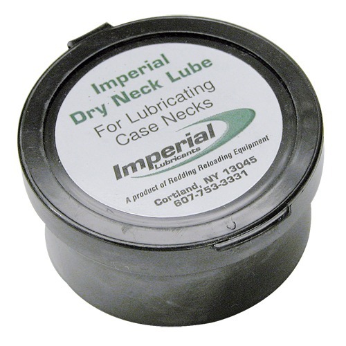 IMPERIAL DRY NECK LUBE fra REDDING er et grafittbasert pulver som reduserer chatter og friksjon på hylsene dine i størkedyse. Dette tørre pulveret vil ikke kontaminere ladningspulveret, så det er ikke nødvendig å fjerne det fra innsiden av hylsehalser etter størkning.