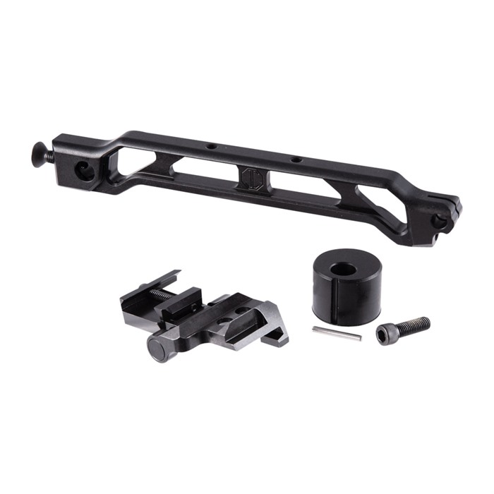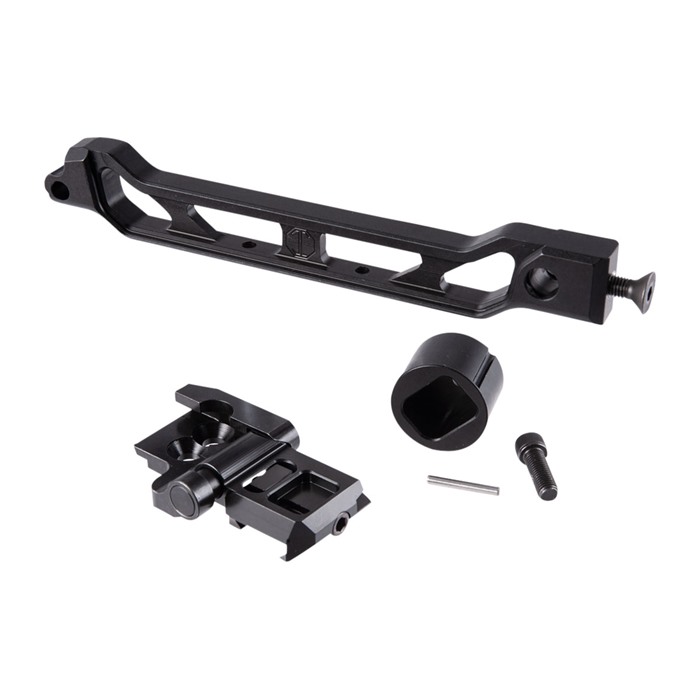 Kindlejusteringen kan justeres ved å flytte stock/brace opp eller ned på adapteren, med 2 høydeposisjoner tilgjengelig. Den er laget av 7075 aluminium med en svart hardcoat anodisert finish og inkluderer monteringsbolt for nedre hull.