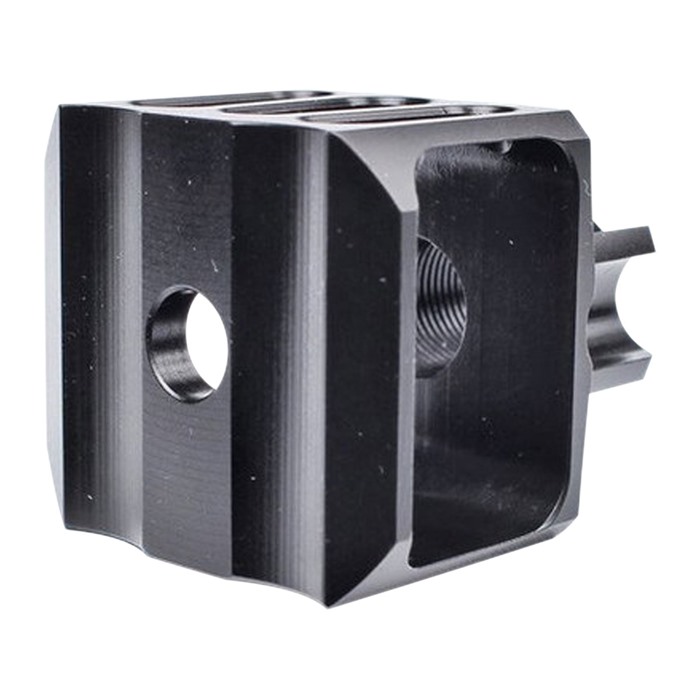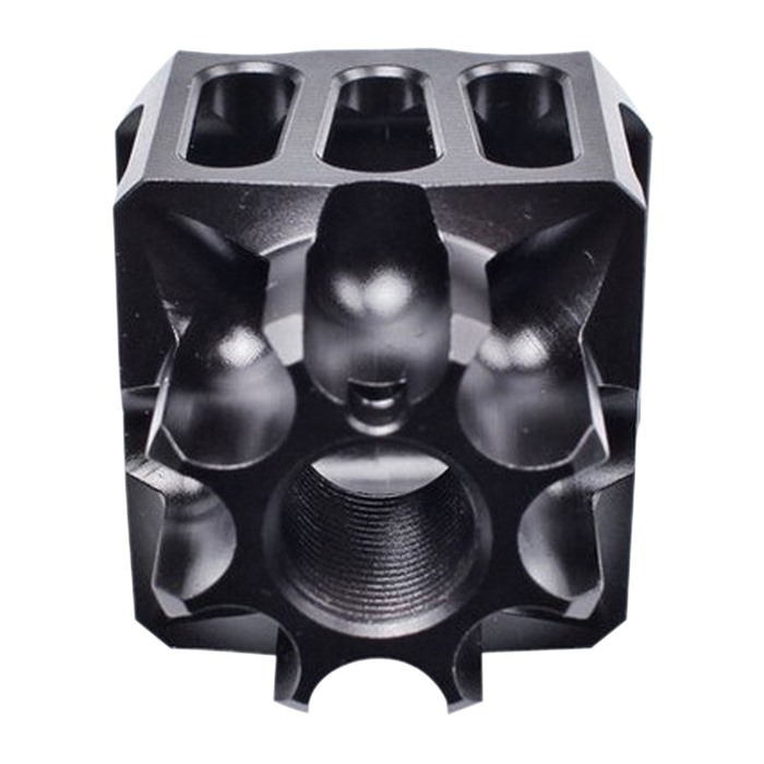 Loud And Flashy 14mm LH gjenger. Loud And Flashy er en STOR enkeltkammer munnbrems designet for å forbedre lyd og blits, samtidig som den reduserer rekyl og munnheving! 14-1LH gjenger, 1,7" bred, 1,5" høy. Legger kun til litt over 1". Veier 4,58 oz. 17-4ph rustfritt stål QPQ Black Nitrided. Begrensning av løpet lengde for bruk av denne enheten er 7,65".Leveringstid ca. 14-21 dager.