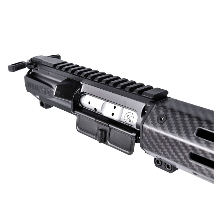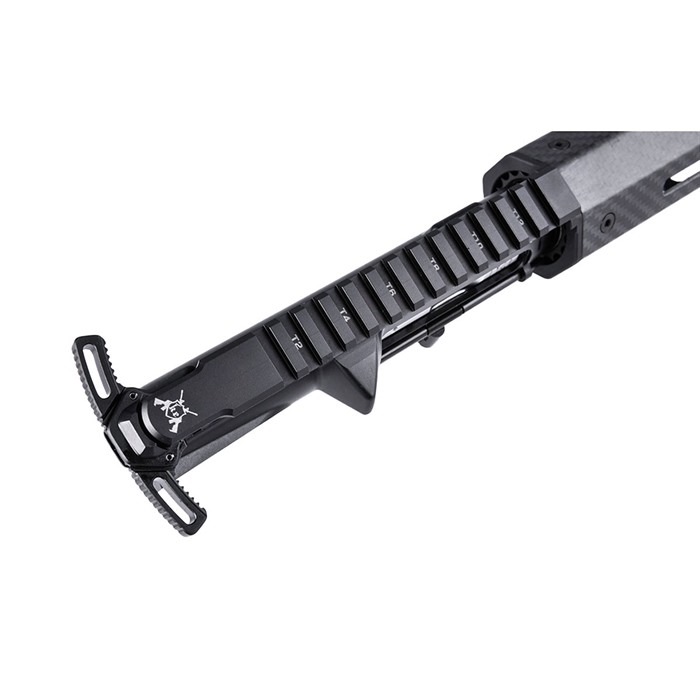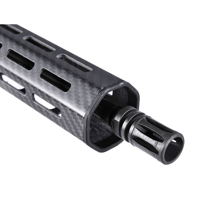 Inkluderer også vår recoil lug støttede gas key Breek Ambidextrous Charging Handle, 15" Carbon Fiber Rail System, 8 MLOK spor på 7 sider, og 5 MLOK spor på toppen.