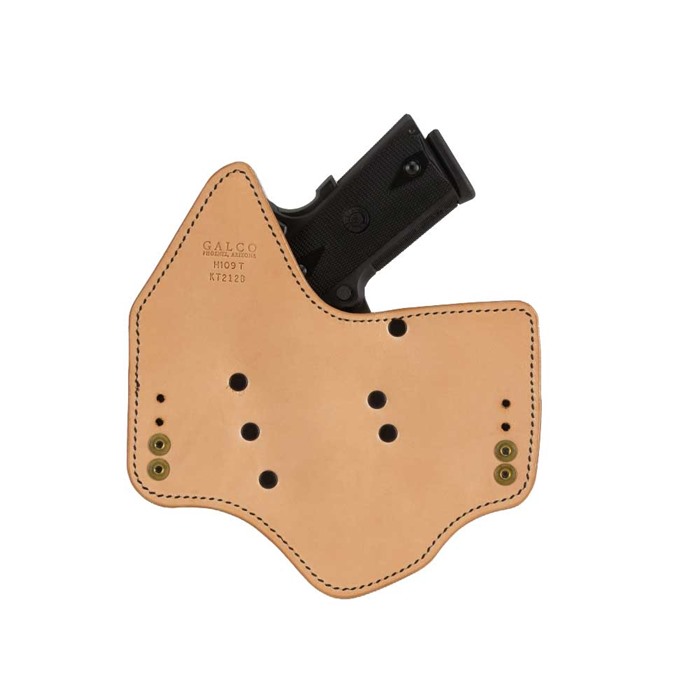 Inside the waistband holster combines easy concealment and secure, all-day comfort. Durable, yet breathable saddle leather backing panel rests against the body, with a supple Napa leather outer covering that makes it easy to tuck your shirt smoothly over the holster. Rugged Kydex® holster pocket holds its shape and maintains a snug grasp on the gun. Spring steel clips attach the holster to your belt and let you set the carry height and angle you prefer. Does not fit California-compliant versions of the S&W M&P Shield. Fits belts up to 1.75" wde