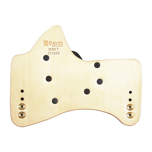 Leather backing panel and outer shell, Kydex holster pocket, black. Spring steel belt clips, blued. Fits belts up to 1¾” wide. Right-hand only.