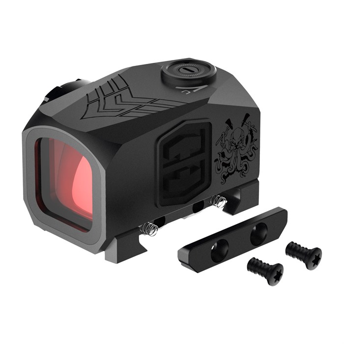 Dette robuste dot-siktet takler både vær og uventede situasjoner med sitt 7075 aluminiumskropp og ytre vanntette linser. Du trenger ikke å bekymre deg for det unike sidebolte fotavtrykket Kraken har for økt stabilitet, vi leverer RMR og MOS fotavtrykk adapterplater rett ut av boksen.