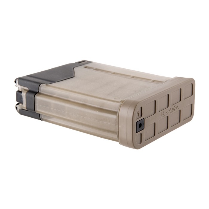 L5AWM-magasinet har et design som inkluderer en helsveiset, omsluttende stålmatingslippe og en aggressiv overflatebehandling. Dette gir det ultimate hybridmagasinet som er robust nok for krevende forhold.