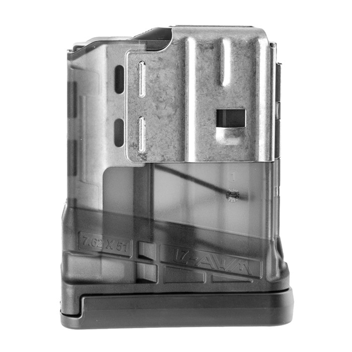 When they set out to develop a tough and reliable .308 polymer magazine on the market, Lancer took engineering inspiration from the L5AWM (5.56) and the SIG Sauer MPX, combining the best advances of both to bring the L7AWM 7.62X51mm magazine to life. The L7AWM is lightweight with steel feed lips that wrap completely around the magazine to maximize stiffness and reliability while preventing dimpling to the front of the magazine. A switchable drain lock in the floor plate comes standard on all L7s, allowing users to configure the magazine for either water-borne or extreme dust conditions. The L7AWM is designed to work in multiple weapon systems.