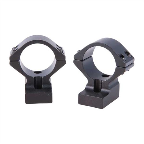 SPECS: 7000 series aluminum, black, anodized, matte finish. Accepts 1" dia. scopes, unless otherwise listed in fits column for 30mm dia. scopes. Height from bottom of ring to top of receiver: Low - .400" (10.1mm), Med - .500" (12.7mm). High - .640" (16.3mm), X‑High - .740" (18.8mm). Approx. weight 2.1 oz. (59 g). Some heights vary, see chart below. Rem. 700 also fits 721/722/725 and 40X models. Rem. Model Seven fits receivers with four screw holes. Savage AccuTrigger fits round top centerfire receivers with AccuTrigger. Win. 70 fits .860" rear hole spacing only.