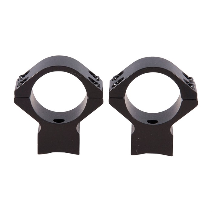 SPECS: 7000 series aluminum, black, anodized, matte finish. Accepts 1" dia. scopes, unless otherwise listed in fits column for 30mm dia. scopes. Height from bottom of ring to top of receiver: Low - .400" (10.1mm), Med - .500" (12.7mm). High - .640" (16.3mm), X‑High - .740" (18.8mm). Approx. weight 2.1 oz. (59 g). Some heights vary, see chart below. Rem. 700 also fits 721/722/725 and 40X models. Rem. Model Seven fits receivers with four screw holes. Savage AccuTrigger fits round top centerfire receivers with AccuTrigger. Win. 70 fits .860" rear hole spacing only.