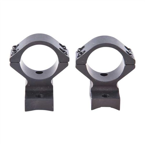 SPECS: 7000 series aluminum, black, anodized, matte finish. Accepts 1" dia. scopes, unless otherwise listed in fits column for 30mm dia. scopes. Height from bottom of ring to top of receiver: Low - .400" (10.1mm), Med - .500" (12.7mm). High - .640" (16.3mm), X‑High - .740" (18.8mm). Approx. weight 2.1 oz. (59 g). Some heights vary, see chart below. Rem. 700 also fits 721/722/725 and 40X models. Rem. Model Seven fits receivers with four screw holes. Savage AccuTrigger fits round top centerfire receivers with AccuTrigger. Win. 70 fits .860" rear hole spacing only.