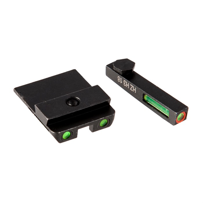 LiteWave H3™ Green + Orange Front Ring Sights from HIVIZ deliver a "triple threat" improvement on traditional night sight technology that ensures you can easily acquire your sights 24 hours a day in ANY light conditions. LitePipe fiber optic rods gather ambient light to produce a bright green, three-dot sight picture that's as easy to acquire in the sunlight of high noon as it is in the long shadows just before sunset. At night, the LiteWave H3's self-illuminating green Tritium inserts - filled with extra-bright "H3" Tritium gas - take over to maintain full visibility of those three dots. As a further enhancement, this version of LiteWave H3™ sights have a bright orange ring surrounding the front dot to help you find the front sight and get the three dots aligned fast - STP, in fact. (That's Sooner Than Possible… OK, maybe we exaggerate just a bit.) Front & rear dots are GREEN; front dot surrounded by ORANGE circle Traditional, intuitive, horizontal 3-dot pattern Exceptional visibility in ANY light conditions Steel sight bodies with durable satin black finish 1911 set fits all Kimber pistols with fixed sights; does not fit Micro Glock models available for standard, large, and G42/43 frame pistols & fit all "Gens" Smith & Wesson M&P fits full-size & compact pistols in all calibers; does not fit CORE, M&P 22 or M&P long slide Springfield XD fits XD, XDS, XDE & XD-M; does not fit XD w/5.25" bbl Sold as front/rear sight sets, HIVIZ LiteWave H3™ Green + Orange Front Ring sights are engineered for a drop-in fit to your pistol's factory slide dovetails or screw holes. Sight bodies are made entirely of steel to ensure excellent protection for the Tritium and fiber optic inserts. Sights are sized to allow proper clearance in standard holsters for your pistol. Put a set of HIVIZ LiteWave H3™ Green + Orange Front Ring sights on your pistol - and enjoy all the benefits of the highly intuitive, easy to acquire sights that get you on target FAST!