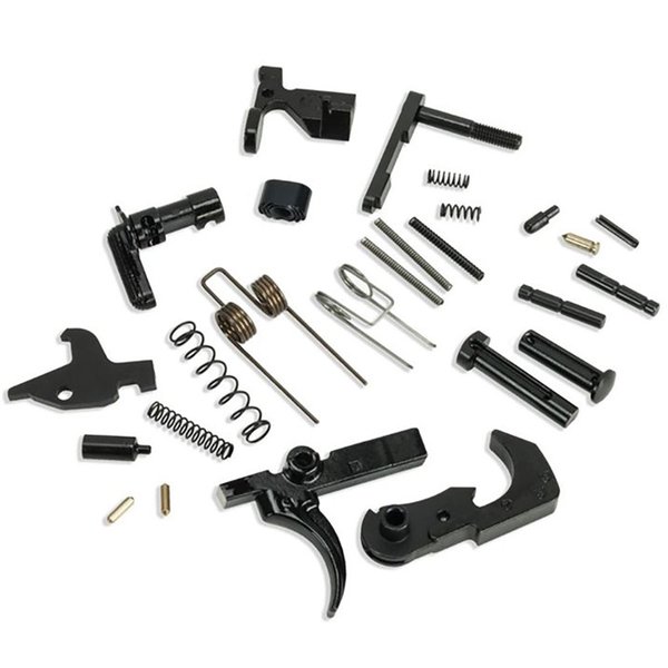 Dette settet er det samme som det komplette settet, men uten fire control group. Kombiner med triggerpakken etter eget valg for å fullføre alt som er nødvendig for å montere din AR-15 lavere mottaker. Helt amerikansk produsert.