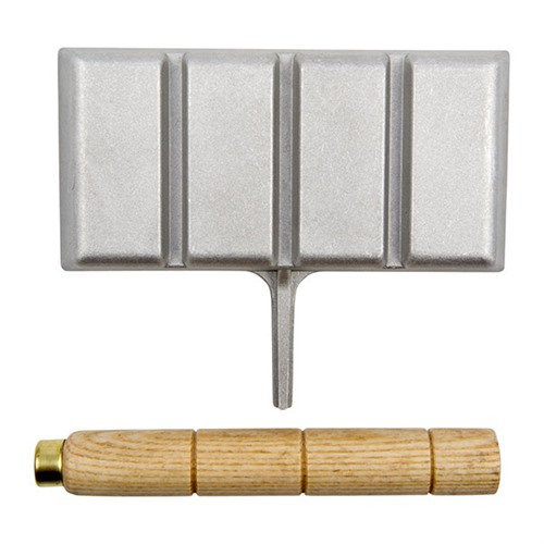 Lyman ingot mould er nyttig når du smelter ned skrapbly, tømmer ovnen din, eller når du blander legeringer. Denne formen lager fire, brukervennlige ingoter som stables enkelt og veier omtrent 1 lb.