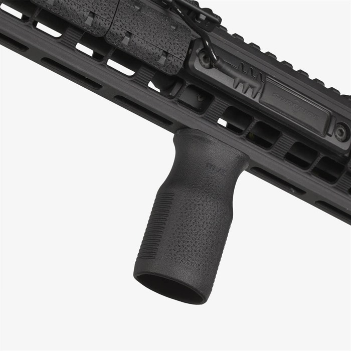 The M-LOK MVG is a light weight vertical foregrip that attaches directly to M-LOK compatible hand guards and forends. The M-LOK MVG is made from the same high quality polymer as other Magpul products, and uses the new Magpul TSP texture for positive control in all environments. With rounded contours and a shorter length, the M-LOK MVG has been optimized for use with the “thumb break method” of shooting and can also be used as a traditional vertical foregrip.