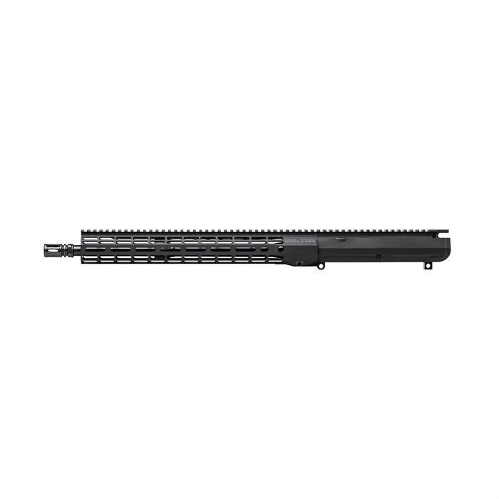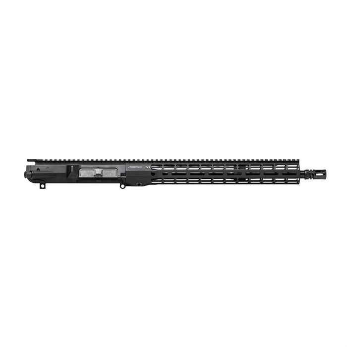 The R-ONE handguards are designed with size and weight in mind, while still providing plenty of real-estate to accommodate any attachment needs the end user may have. Aero’s proprietary ATLAS attachment system is a durable and dependable mounting platform, maintaining a slim profile while still providing the strength and stability customers have grown to love from Aero Precision handguards. INCLUDES: M5 Assembled Upper Receiver ATLAS R-ONE Handguard of choice 16" .308 CMV Barrel, Mid-Length Low Profile Gas Block and Mid-Length Gas Tube Product comes assembled This complete upper does not include a BCG or Charging Handle. M5 ASSEMBLED UPPER FEATURES: Forged from 7075 T6 aluminum M4 Feedramps .2795 takedown pin holes Laser engraved T-marks (Anodized Only) DPMS High Profile (.210) Tang) Includes port door and forward assist ATLAS R-ONE HANDGUARD FEATURES: Full top picatinny rail for optional attachments Quick disconnect sling socket at the 3, 6 and 9 o'clock positions Compatible with low profile gas blocks 1.5" Inside diameter 1.75" Outside diameter Compatible with AR-308 Upper Recievers with a thread pitch of 1-7/16 x 16 along with a DPMS High Profile (.210) Tang Rail 16" .308 CMV BARREL FEATURES: Twist: 1 in 10 Threading: 5/8 x 24 Material: 4150 Chrome Moly Vanadium Finish: QPQ Corrosion Resistant Gas Block Journal: .750 Gas System Length: Mid-Length Weight: 36 oz DPMS Barrel Extension HP and MPI Tested