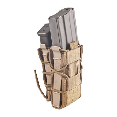 High Speed Gear’s Double Decker TACO® magasinbærer kombinerer en modulær rifle magasinlomme og en modulær pistol magasinlomme i en sikker enhet. Denne unike lommen kan trygt holde en rekke kombinasjoner av magasiner og andre tilbehør.