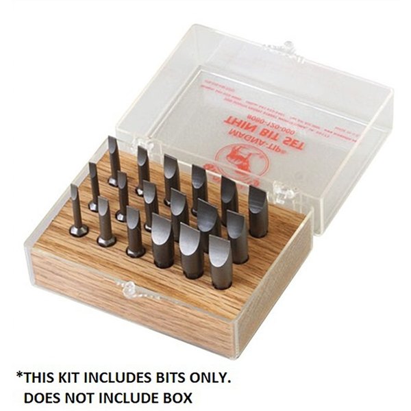 Eighteen incredibly thin bits to fit the extra-narrow screw slots often encountered in the gun shop. Take great care when using these bits. The blade MUST fill the slot from side-to-side and edge-to-edge or it will most certainly break on a firmly seated screw. Freeze spray, heat, penetrating oil, a few taps, regrinding the bit for an even better fit - all these tricks can help give success. Bits Inluded in Kit #120-1 #120-2 #150-1 #150-2 #180-1 #180-2 #210-1 #210-2 #240-1 #240-2 #270-1 #270-2 #300-1 #300-2 #340-1 #340-2 #360-1 #360-2