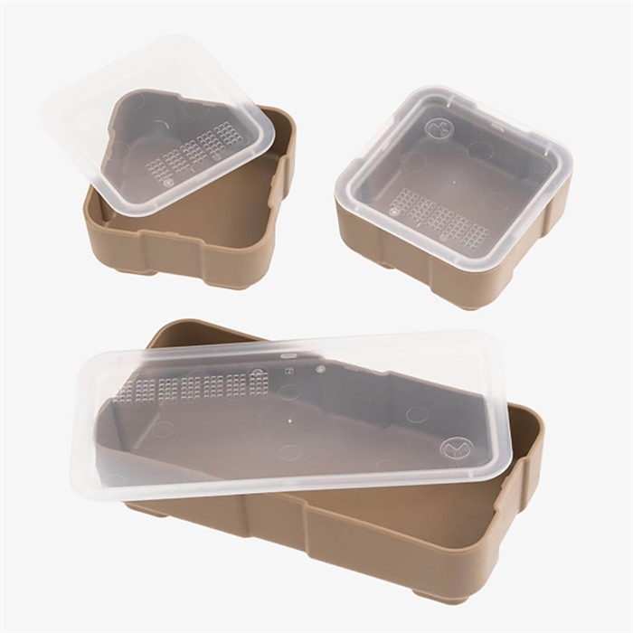 840815147756 DAKA Bins er designet for å passe inn i DAKA GRID Organizer Panels for å holde løse deler, utstyr, ammunisjon og andre gjenstander sikkert inne i Magpul DAKA Hard Cases eller enhver boks utstyrt med DAKA GRID Organizer. DAKA Bins kommer i to størrelser for å gi fleksibilitet i lagring, med en 2x4 Bin og to 2x2 Bins, der hver peg på undersiden av Bin låser seg sikkert inn i GRID Panels. DAKA Bins er laget med transparente lokk for enkel identifikasjon av innholdet, og de forsterkede lokkklipsene låser seg sikkert med Bin sideklipsene for å holde Bins lukket. For ytterligere organisering gir malepenn prikkmatrise paneler på lokkene brukerne ekstra identifikasjonsmuligheter for GRID-organisering. Bortsett fra de holdbare lokkene, er DAKA Bins laget av solid polypropylen og designet for robust bruk med 0,1” tykke vegger for å beskytte det som plasseres inni. DAKA Bins kommer i svart, FDE og rød, så DAKA Bins’ farger kan også brukes som koding for de som måtte trenge rask visuell bekreftelse av innholdet. Vi har også laget våre DAKA Bins slik at de er like hjemme utenfor DAKA GRID Organizer på arbeidsbenken din eller hvor som helst du bruker dem. Hver pakke kommer med én (1) 2X4 Bin og to (2) 2X2 Bins. Forsterkede lokkklips låser på Bin kroppen for å sikre deler, verktøy og andre små gjenstander. Nestes inn i DAKA GRID Base Panels. Transparent lokk for enkel identifikasjon og organisering. Stablebare og funksjonelle utenfor DAKA GRID Organizer. Laget av slitesterkt, kjemikalieresistent polypropylenmateriale. KOMPATIBILITET: DAKA GRID Organizer Base. Tre (3) DAKA Bins/qty, sendes med to (2) 2X2 DAKA Bin og én (1) 2X4 DAKA Bin.Leveringstid ca. 14-21 dager.