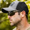 DEFIANT EYEWEAR Magpul has been developing innovative products for firearms enthusiasts and the professional users for more than 20 years. Their eyewear merges that same innovation with style and advanced features. Their latest model, the Defiant, is designed to deliver functional, adaptable, ballistic eye protection along with maximum coverage and visibility. When your environment or location changes, the Defiant has a unique lens replacement capability so you can transition to the coverage and color you need. The Defiant excels at providing extreme impact protection without sacrificing comfort. It gives you Z87+ ballistic protection and has been tested to MIL-PRF-32432 ballistic standards. Its lens shape accommodates both large and medium faces without sacrificing peripheral vision or protection coverage. The unique lens and frame interface enhances the lens’ ability to flex when worn, optimizing user fit, and its 7-base curvature is purpose-built for optimal clarity and light transmission. Critical touch points such as the rubber overmolded temple pads and the soft rubber nose pads keep the Defiant comfortable and in place, even when you’re covered in perspiration or on the move. The Defiant’s temples are specifically designed to eliminate pressure points while wearing over-the-ear hearing protection and integrate seamlessly with helmets or headwear. With its easy-to-use quick-release lever system, switching between the three unique Defiant Replacement Lenses is quick and simple, meaning you have different polarization, color, and light transmittance options available at any time. Comes with a black large DAKA Can storage case and a Magpul Eyewear Bag made with lens-safe cleaning material. MAXIMUM PROTECTION AND COVERAGE Ballistic rated Z87+ and MIL-PRF-32432 lenses and TR90 frames meet both high velocity impact protection and safety ratings Low-profile temple design maintains comfort and function while wearing hats or over the ear hearing protection SUPERIOR LENS QUALITY Oleophobic treatment of lenses provides liquid and other chemical protection and added scratch resistance Anti-reflective coating on inside of lenses minimizes distracting reflections REMOVABLE LENSES Lenses are quickly removable for easy maintenance and changing conditions Designed for Medium / Large faces SPECIFICATIONS: Lens Rating: ANSI Z87+ and MIL-PRF-32432 Materials: TR90 frame