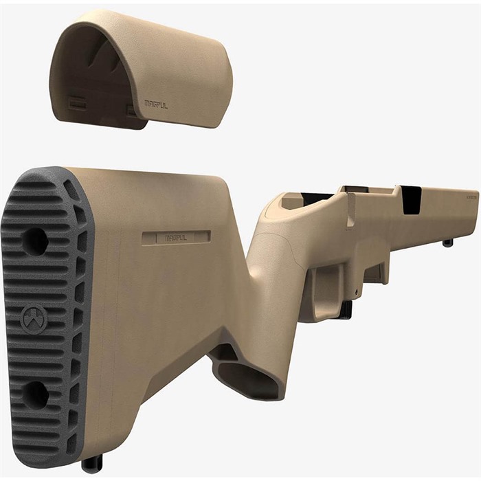 MAGPUL HUNTER LITE STOCK FOR REMINGTON 700 SHORT ACTION The Hunter Lite – Remington 700 Short Action is a purpose-built hunting stock designed for Remington 700 rifles and Remington 700-pattern rifles chambered in short-action calibers. The Hunter Lite streamlines Magpul’s original Hunter Stocks to reduce the weight and slim the dimensions, providing a fully featured upgrade that’s lighter and more maneuverable during their outdoor pursuits. The result is a stock that weighs almost 25% less and has a forend that’s almost 25% narrower than their original Hunter 700 Stock. The Hunter Lite Stock– Remington 700 Short Action is convertible to both right and left-handed rifles by simply swapping out the included inserts in the stock. Receiver support is provided by an extruded aluminum V-bedding block and reinforced steel pillars, enhancing consistency and accuracy It’s strength and firing dependability are supported by the extruded aluminum V-bedding block that features reinforced steel pillars to prevent compression and deformation while shooting. Featuring enhanced ergonomics, the buttstock and forend have integral sling swivel studs for use with a variety of slings and bipods. The buttstock includes removable half-inch spacers to enable LOP adjustments and snap-on cheek risers to create adjustable comb height. An enlarged trigger guard allows comfortable use with gloves and easy access to the ambidextrous magazine release. The magazine well features stamped steel over-insertion tabs to ensure repeatable, proper presentation of the loaded magazine. The forend also features multiple M-LOK® slots to accommodate your choice of M-LOK accessories and it’s compatible with barrel profiles up to Medium Palma. Made in the USA. SPECIFICATIONS: Platform: Remington® 700 Compatibility: Short-action Remington 700 rifles and Remington 700-pattern receivers with barrel contours up to Medium Plama. Because of the integral magazine well, it is not compatible with Remington hinged floor plates. Butt-Pad Dimensions: 1.5 x 4.9 in. Length of Pull: 13-15 in. LOP using included spacers Weight : 2.4 lbs Width of Butt, max: 1.5 in. (no Riser) - 1.75 in. (with Riser) Width of Stock, max: 1.75 in. *NOTE: Compatible with aftermarket barrel profiles up to a Medium Palma (0.920" dia. 5.50" forward of the breech) Accepts ALL factory Remington barrels including VTR triangular barrel contours Accepts most factory and aftermarket triggers