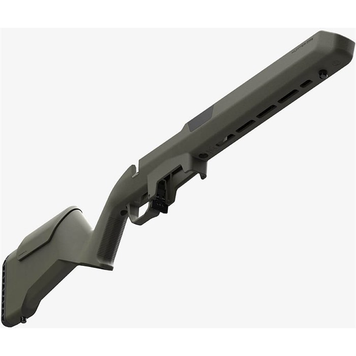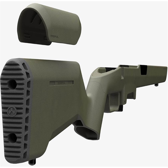 MAGPUL HUNTER LITE STOCK FOR REMINGTON 700 SHORT ACTION The Hunter Lite – Remington 700 Short Action is a purpose-built hunting stock designed for Remington 700 rifles and Remington 700-pattern rifles chambered in short-action calibers. The Hunter Lite streamlines Magpul’s original Hunter Stocks to reduce the weight and slim the dimensions, providing a fully featured upgrade that’s lighter and more maneuverable during their outdoor pursuits. The result is a stock that weighs almost 25% less and has a forend that’s almost 25% narrower than their original Hunter 700 Stock. The Hunter Lite Stock– Remington 700 Short Action is convertible to both right and left-handed rifles by simply swapping out the included inserts in the stock. Receiver support is provided by an extruded aluminum V-bedding block and reinforced steel pillars, enhancing consistency and accuracy It’s strength and firing dependability are supported by the extruded aluminum V-bedding block that features reinforced steel pillars to prevent compression and deformation while shooting. Featuring enhanced ergonomics, the buttstock and forend have integral sling swivel studs for use with a variety of slings and bipods. The buttstock includes removable half-inch spacers to enable LOP adjustments and snap-on cheek risers to create adjustable comb height. An enlarged trigger guard allows comfortable use with gloves and easy access to the ambidextrous magazine release. The magazine well features stamped steel over-insertion tabs to ensure repeatable, proper presentation of the loaded magazine. The forend also features multiple M-LOK® slots to accommodate your choice of M-LOK accessories and it’s compatible with barrel profiles up to Medium Palma. Made in the USA. SPECIFICATIONS: Platform: Remington® 700 Compatibility: Short-action Remington 700 rifles and Remington 700-pattern receivers with barrel contours up to Medium Plama. Because of the integral magazine well, it is not compatible with Remington hinged floor plates. Butt-Pad Dimensions: 1.5 x 4.9 in. Length of Pull: 13-15 in. LOP using included spacers Weight : 2.4 lbs Width of Butt, max: 1.5 in. (no Riser) - 1.75 in. (with Riser) Width of Stock, max: 1.75 in. *NOTE: Compatible with aftermarket barrel profiles up to a Medium Palma (0.920" dia. 5.50" forward of the breech) Accepts ALL factory Remington barrels including VTR triangular barrel contours Accepts most factory and aftermarket triggers
