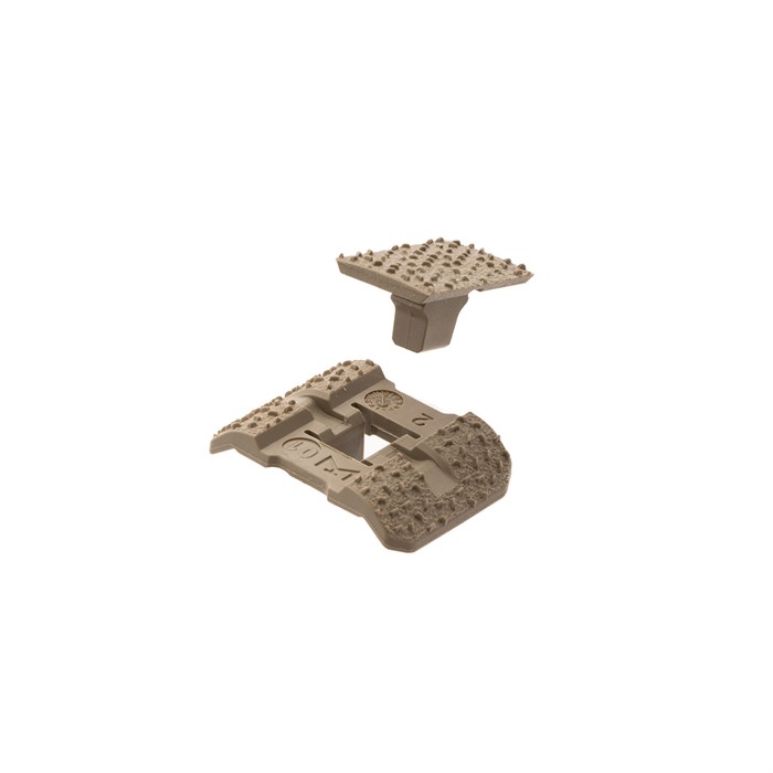 M-LOK Type 2 Half Slot Rail Covers er lavprofil, to-delte deksler som installeres direkte på de fleste full- og halv størrelse M-LOK aluminium håndtak (ikke-polymer). Designet for å fungere sammen med full størrelse M-LOK Type 2 Rail Covers, kan Half Slot Rail Covers brukes til å fylle ekstra plass som er igjen av full størrelse Rail Covers og andre tilbehør—noe som gir mer tilpasning og dekning av håndtaket ditt.