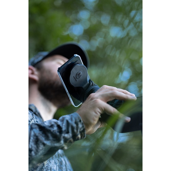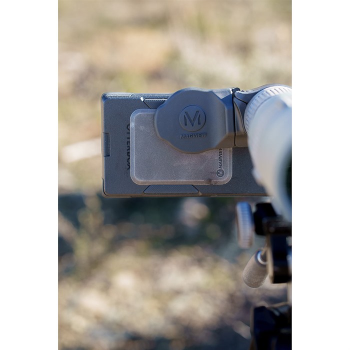 MAGVIEW S1 SCOPE ADAPTER er designet for å gi en utrolig stabil plattform ved hjelp av sterke sjeldne jordmagneter som er innebygd i adapteren. Dette systemet krever bare en super tynn rustfri stålplate som festes til telefonen for å sikre enheten til optikken.
