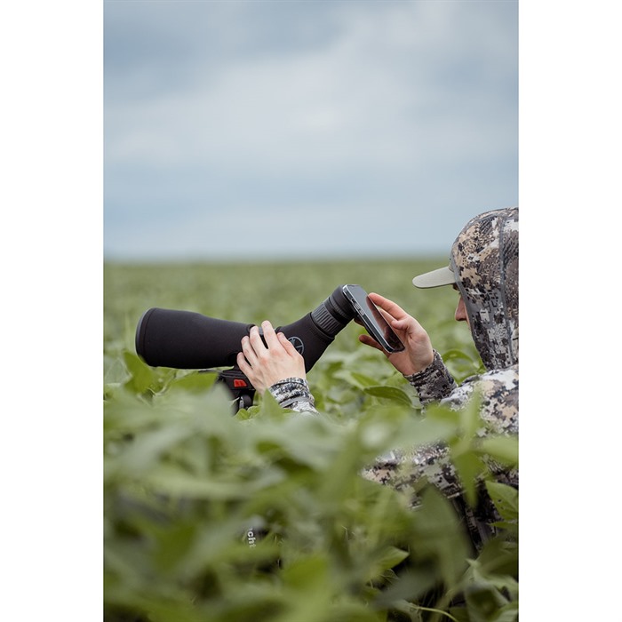 MAGVIEW S1 SCOPE ADAPTER er designet med sterke sjeldne jordmagneter innebygd i adapteren, som skaper en utrolig stabil plattform. Den krever kun en super tynn rustfritt stålplate som festes til telefonen for å sikre enheten til optikken.
